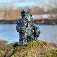 Лісовик - охоронець і мудрий господар лісу, дух прадавньої природи. У цій скульптурі він постає разом із вовком - вірним супутником дикої природи. На його плечі сидить крук - символ знання, передбачливості та довголіття, а в дуплі на грудях причаїлася сова - втілення мудрості та нічної пильності.