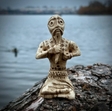 Оригінал цієї загадкової фігурки було знайдено археологами в кургані Чорна Могила (Чернігівщина, X століття). Дослідники припускають, що це образ бога-громовержця Тора або сакрального воїна-охоронця - символу сили, мужності та захисту.