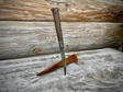 Матеріали:• руків’я – морений дуб• лезо – інструментальна вуглецева сталь 9ХФМ • піхви – шкіра рослинного дублення• обойма та кільце - нейзильбер