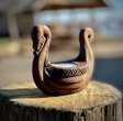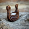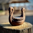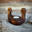 Цей різьблений дерев’яний підсвічник натхненний легендарними довгими кораблями вікінгів — Дракарами. Символізуючи пригоди, силу та відкриття, він прикрашений складними норвезькими орнаментами та має голову дракона на носі, що додає автентичності вашому домашньому декору.