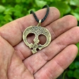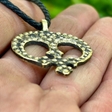 Підвіска Лунниця хрестовключна з Пересопниці у дерев'яному футлярі. Підвіска:• матеріал - латунь• розмір: 33× 40 мм• виготовлена давнім методом лиття • вага ~8 г Футляр: • матеріал – дерево• діаметр ~70 мм• висота ~35 мм • вага ~70 г