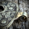 Підвіска Лунниця з Острога (Рівненська область, Україна) у дерев'яному футлярі Підвіска:• матеріал - латунь• розмір: 35× 29 мм• виготовлена давнім методом лиття • вага ~6 г Футляр: • матеріал – дерево• діаметр ~70 мм• висота ~35 мм • вага ~70 г