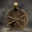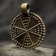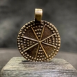 Ця кругла підвіска з рельєфним орнаментом відтворює один із найдавніших солярних символів — знак Сонця, який вважався джерелом життя, тепла, сили та захисту. Промені, що розходяться від центра, нагадують колесо або хрест із променями — образ, відомий ще з доби бронзи.