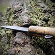 Характеристики:• Руків’я: виготовлене з кленової деревини, відомої своєю природною красою, міцністю та довговічністю.• Лезо: кована вуглецева сталь, що забезпечує відмінну гостроту, надійність і простоту догляду.• Довжина в розкладеному вигляді: 140 мм• Довжина у складеному вигляді: 101 мм• Довжина леза: 60 мм• Довжина руків’я: 80 мм• Вага: 15 г