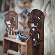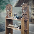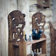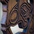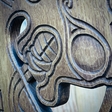 Бічні частини полиці декоровані різьбленим орнаментом скандинавських вузлів та зображеннями драконів.