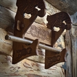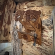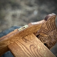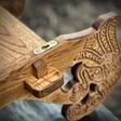 Самі полички для зброї виготовлені у формі кочетів для човнів. Кочети (або щучки) - це спеціальні дерев’яні кріплення, які встановлювалися вздовж борту довгого човна, наприклад драккара, для надійної фіксації весел під час плавання. Такий дизайн надає виробу автентичного вигляду та відтворює атмосферу скандинавських морських традицій.