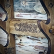 Самі полички для зброї виготовлені у формі кочетів для човнів. Кочети (або щучки) - це спеціальні дерев’яні кріплення, які встановлювалися вздовж борту довгого човна, наприклад драккара, для надійної фіксації весел під час плавання. Такий дизайн надає виробу автентичного вигляду та відтворює атмосферу скандинавських морських традицій.